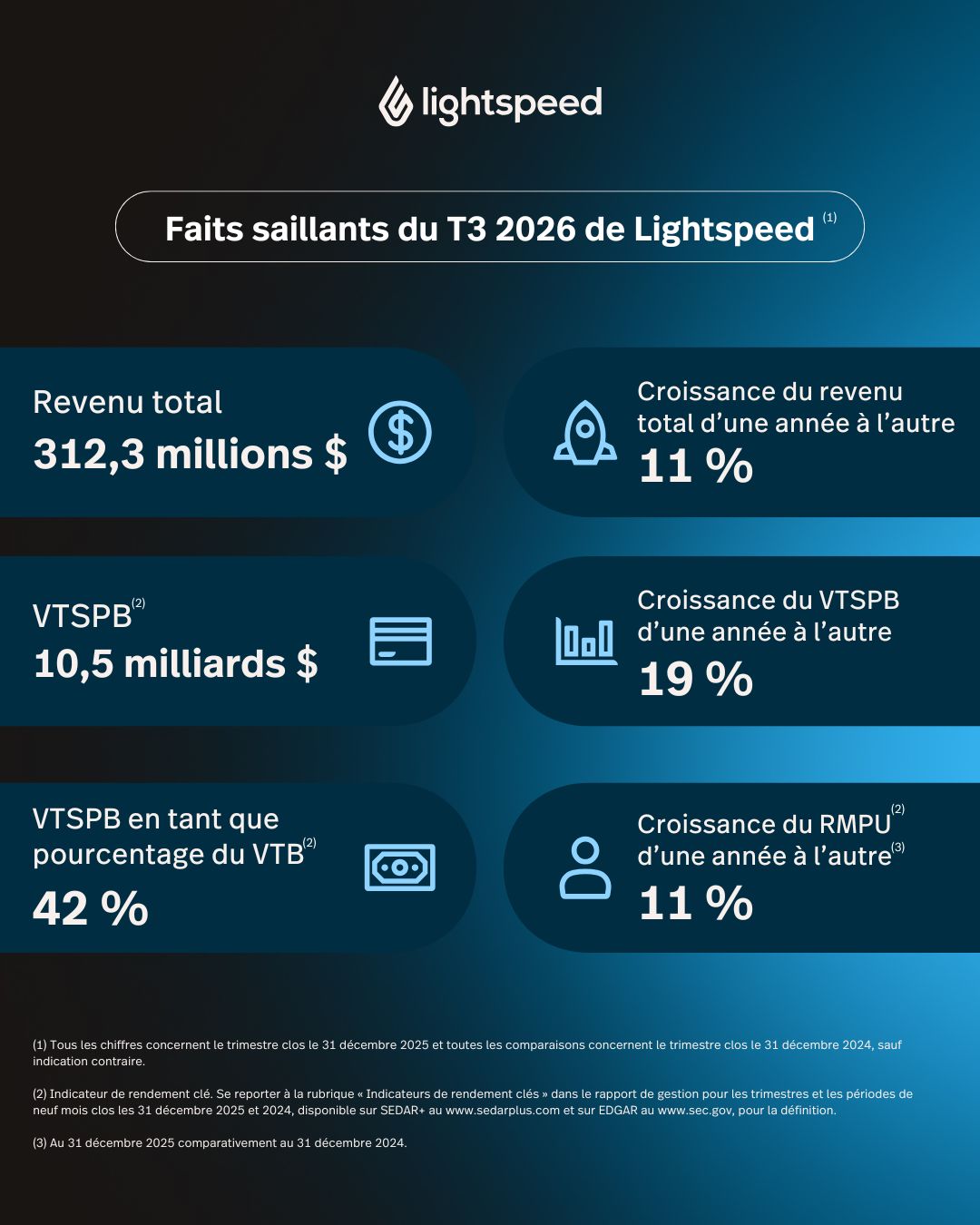 Lightspeed Commerce Inc., la plateforme omnicanale unifiée qui propulse les entreprises ambitieuses des secteurs de la vente au détail et de la restauration dans plus d’une centaine de pays, a présenté aujourd’hui ses résultats financiers pour le trimestre et la période de neuf mois clos le 31 décembre 2025.