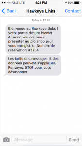 Mieux encore, lorsque vos services de messagerie texte s’intègrent directement à la plateforme de gestion golfique, les données, y compris les numéros de téléphone et les renseignements sur les clients, circulent de façon transparente entre votre base de données clients, votre outil de réservation en ligne, vos feuilles de départs et votre point de vente. Ceci alimente directement votre liste de numéros de téléphone et de noms de clients, si vous choisissez d’envoyer des messages personnalisés.
