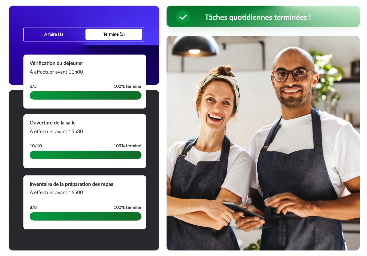 Des analyses en temps réel et des outils numériques de gestion des tâches pour vous aider à standardiser vos opérations, maintenir des normes élevées et développer vos activités.