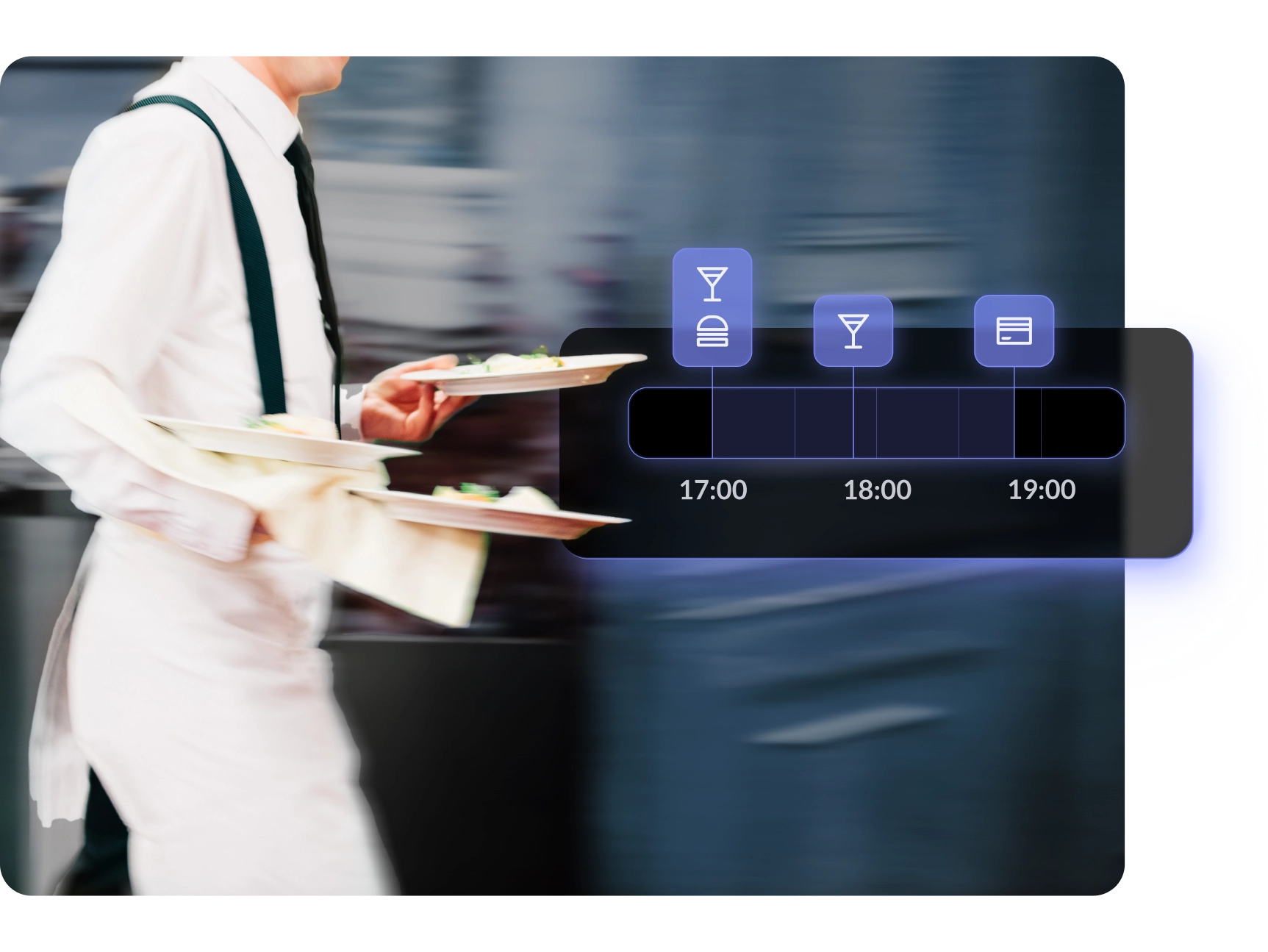 - Guidez votre équipe en toute confiance et visualisez le déroulement de chaque table afin que les serveurs sachent quand intervenir