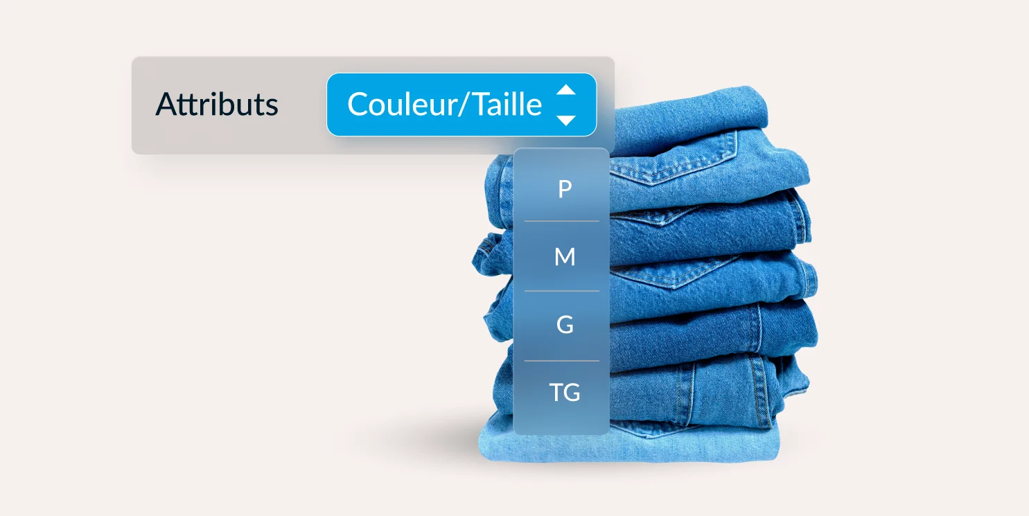 Regroupez les articles similaires en fonction des caractéristiques qu'ils ont en commun, comme la couleur et la taille, grâce à notre fonctionnalité de variantes.