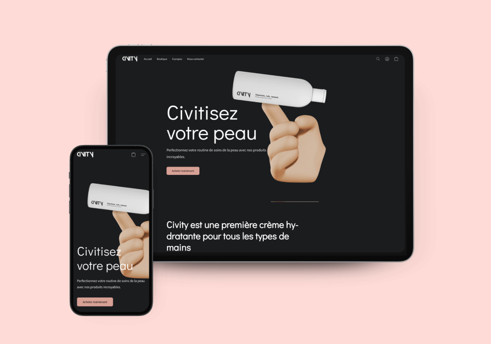 Besoin d'inspiration? Choisissez et personnalisez un thème créé par des designers professionnels. Trouvez le design parfait, peu importe ce que vous vendez—qu'il s'agisse de biens physiques, de produits numériques, de services ou d'abonnements.