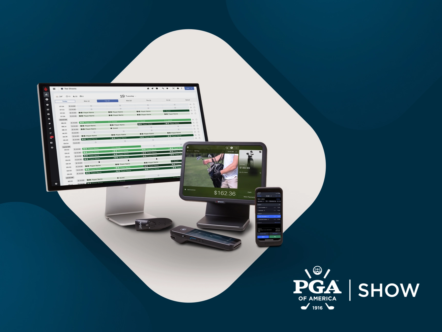 Planifiez une démo en direct au kiosque 3929 et découvrez pourquoi les meilleurs clubs de golf au monde font confiance à Lightspeed Golf.