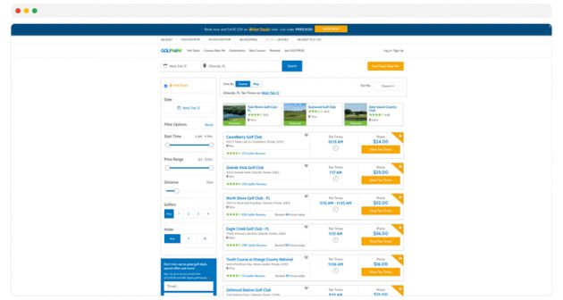 Vous pouvez inscrire votre parcours sur le plus grand marché de temps de départ grâce à l’intégration de GolfNow. Avec des milliers de parcours répertoriés et des millions d’utilisateurs actifs, l’intégration GolfNow est un outil puissant à ajouter à votre arsenal pour augmenter votre présence en ligne et attirer plus de golfeurs.