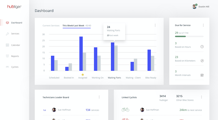 Hubtiger a une application pour les cyclistes, qui les aide à suivre l’utilisation de leur vélo jusqu’à chaque composant. Les cyclistes reçoivent des notifications de service en fonction de ce qui a été défini. Le portail de vente de vélos Hubtiger dispose d’un calendrier numérique pour gérer les réservations, les cartes de travail numériques et de la possibilité de consulter chaque composante des vélos des clients. Les détails que le magasin de vélos peut voir sont la date à laquelle le composant a été ajouté, la distance parcourue et le temps effectué avec chaque composante, ainsi que l’historique de service du vélo. Le devis est créé dans l’atelier sur la carte de travail, qui est ensuite poussée vers Lightspeed et l’application pour les cyclistes. En d’autres termes, le magasin de vélos n’a pas besoin de travail supplémentaire, mais il améliore le service et l’expérience du client. Le cycliste peut alors consulter le devis et avoir un historique de l’entretien de son vélo.