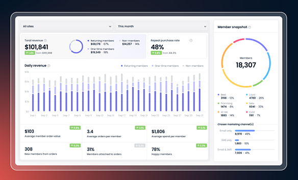 Regroupez toutes vos données et mesurez les performances sur tous les canaux à partir d’un tableau de bord facile à utiliser. Marsello unifie vos données de fidélisation client et de commande afin que vous puissiez suivre vos performances en toute confiance, optimiser vos efforts de fidélisation client et stimuler la croissance de votre entreprise grâce à des résultats fiables.