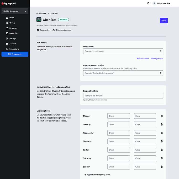 - Recevez les commandes Uber Eats directement dans votre point de vente Lightspeed